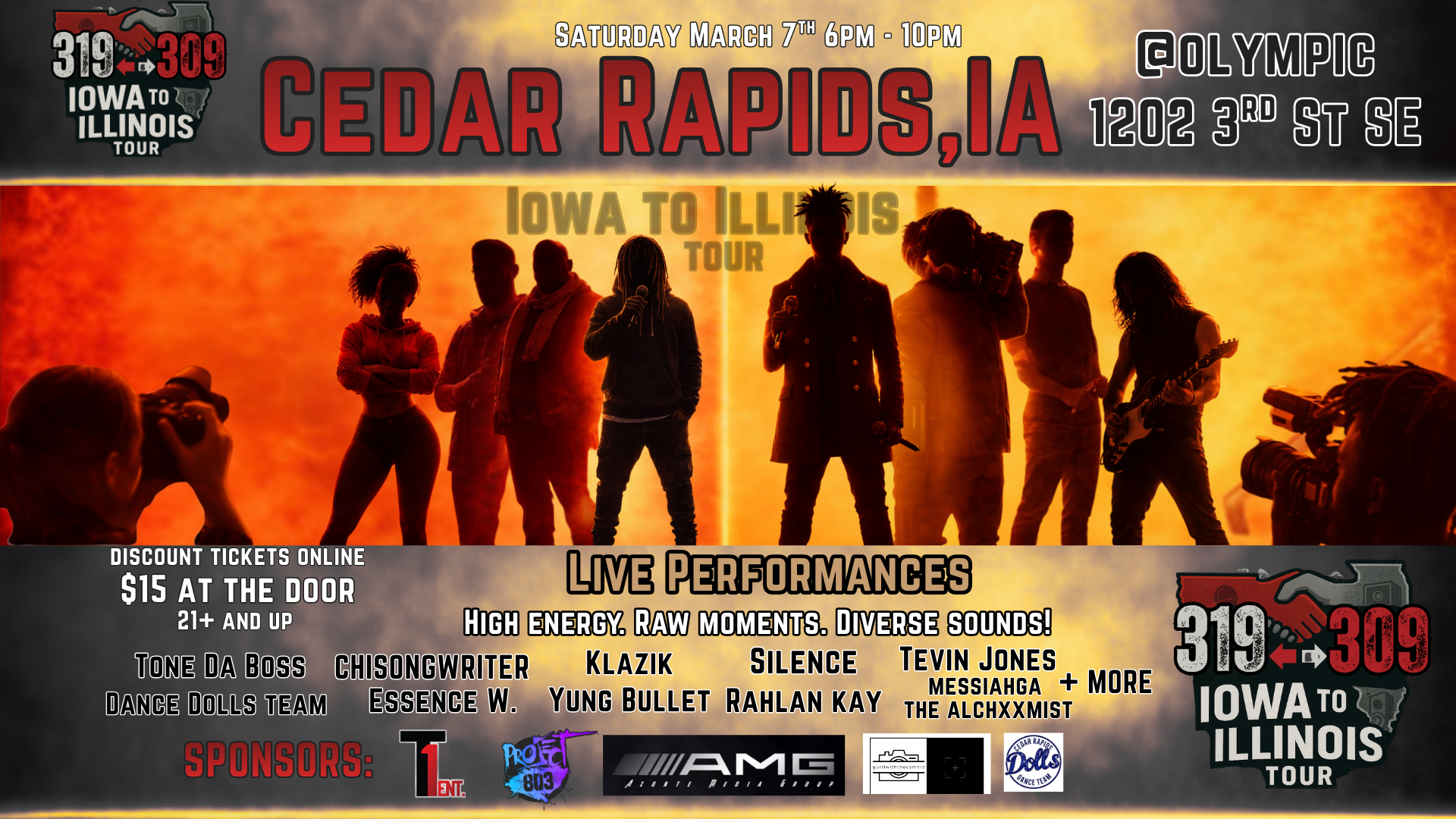 This traveling movement unites the best Hip Hop and R&B independent artists from Iowa and Illinois, delivering top-tier performances across cities in the 319 and 309 area codes. Featuring hometown heavyweights Tone Da Boss, the Cedar Rapids Dance Dollz, Co-Founder and Performer of the Year recipient CHISongwriter, So You Think You Can Dance star Essence W., rising hip hop star Bad News Junior, and award-winning artists like Tevin Jones, Klazik, Silence, 500 ENT, BabyMexico210, and Yung Bullet—captured by videographer Azonte Roby and photographer Juan G. of Young Creatives—this is more than a show, it’s a cultural moment.
